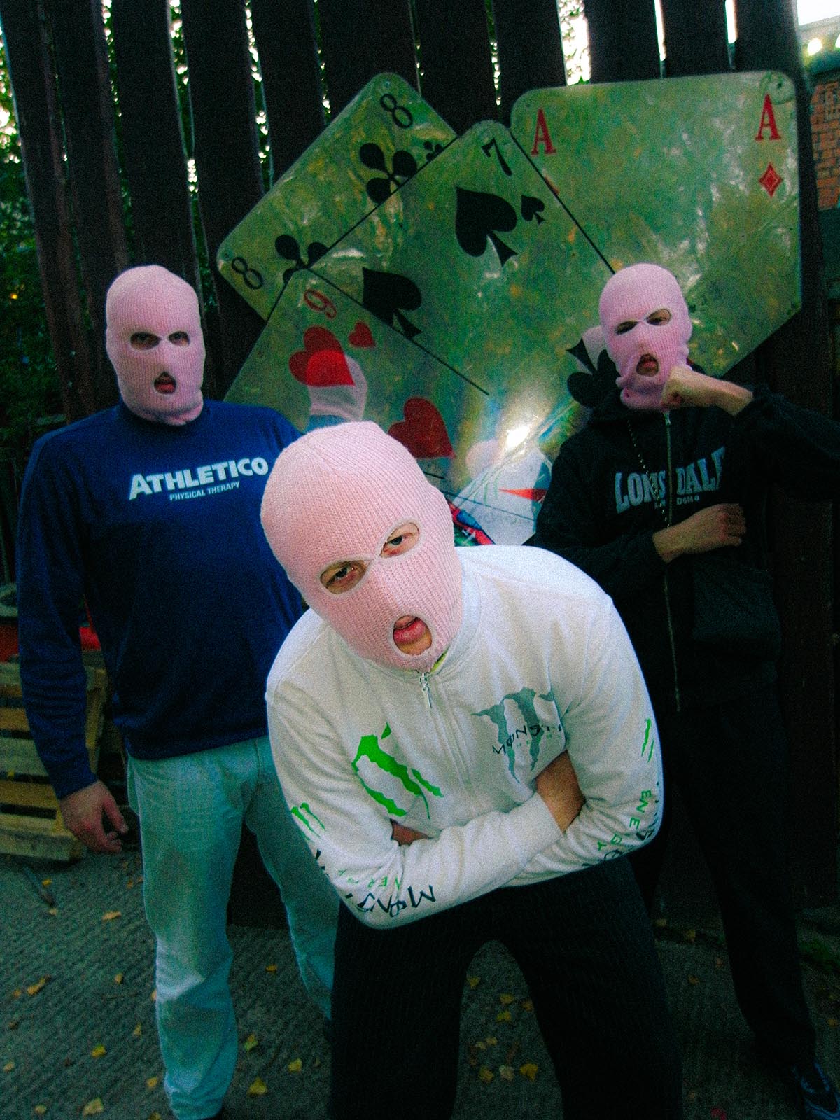 PA69 – man spricht das “PA” englisch und das “69” deutsch – sind eine Rap-Formation aus Berlin. Über die Identität der drei rosa maskierten Rapper DJ DOPE, Rabatto und Turbogianni ist wenig bis überhaupt nichts bekannt. Als gesichert gilt das Aufwachsen im Speckgürtel Berlins und in der nordostdeutschen Provinz. Weitere Gerüchte hinsichtlich der Identität der drei Mitglieder (Basketball-Jugendtrainer, Kampftaucher, Guide-Michelin-Koch, Hochzeits-DJ, Doktor der Rechte oder Freestyle-King) und der Bedeutung des Kürzels PA69 lassen sich nicht zweifelsfrei bestätigen. Ihr erstes Tape, das „Tape Nr. Zwei“, veröff entlichten PA69 bereits im Jahr 2020. Kurz darauf wird „Kingmische“ zum ersten veritablen Underground-Hit. Auf die ersten Konzerte auf Goa-Open-Airs und in Berliner Kneipenkellern folgt nach dem Release von “Biertornado” 2023 eine eigene Tour in ausverkauften Clubs. In ihrer Heimatstadt Berlin spielten PA69 Anfang 2024 im ausverkauften SO36, gefolgt von einer ausverkauften Show im Astra Kulturhaus am Ende des Jahres; ein weiteres Konzert in der Columbiahalle ist bereits angekündigt. Mittlerweile ziehen PA69 aber auch weit über die Berliner Stadtgrenzen hinweg ein äußerst diverses Publikum an und spielten mehrere, ausverkaufte Tourneen und auf Festivals wie dem Splash!, der Fusion, dem Spektrum, dem Pangea oder dem Dockville. Sprich: So langsam kommt niemand mehr an dem Phänomen PA69 vorbei. Dass die Personen hinter PA69 so schwer zu fassen sind, gibt den drei Rappern die ungeheure Freiheit, mühelos in die verschiedensten Rollen zu schlüpfen. Textlich wird hier mit Antistyles und abseitigen Referenzwelten gearbeitet, je skurriler desto besser. Während es also bei anderen Akteuren in der Musikszene um Coolness, Härte und Reichtum geht, geben sich die Rapper betont uncool. PA69 kokettieren gerade mit dem, worauf andere abschätzig schauen: das Leben in der Provinz, Fingerboards, gefälschte Luxus-Uhren oder Supermarkt-Treuepunkte. Kurzum: PA69 sind Meister der „ironisch-dadaistische Verdrehung“ (Alex Barbian). PA69 transportieren in ihrem euphorisch-parolenhaften Rap aber auch ein berauscht-hedonistisches Lebensgefühl und lassen sich damit dem Kosmos des Berliner „Atzen-Raps“ zuordnen. Dabei sind die Einfl üsse bestimmter, insbesondere Berliner, Rap-Größen nicht zu überhören – man fühlt sich immer wieder an das K.I.Z Promo-Album, DJ Reckless, Corus86 oder die Atzen beziehungsweise Frauenarzt und Manny Marc erinnert. Textlich treten PA69 aber nie nach unten. Punchlines richten sich – anders als noch immer im deutschen Rap üblich – weder gegen Frauen noch gegen Minderheiten. PA69 testen zwar das Risiko, missverstanden zu werden, spielerisch aus. Während des Bundestagswahlkampfes 2025 wurden die drei Rapper jedoch ungewohnt deutlich und brachten “Partywut und subtile politische Botschaft” (ZEIT Online) auf dem Anti-AfD-Song “Komplett Blau” zusammen. Live liefern PA69 dabei eine besondere, energiegeladene Show. Immer mit von der Partie: ein Animateur in Sonnenkostüm, Anheizer und Vortänzer in einer Person, sorgsam arrangierte Intros aus popkulturellen Versatzstücken und der mittlerweile nicht mehr wegzudenkende “Biertornado”-Circle-Pit.