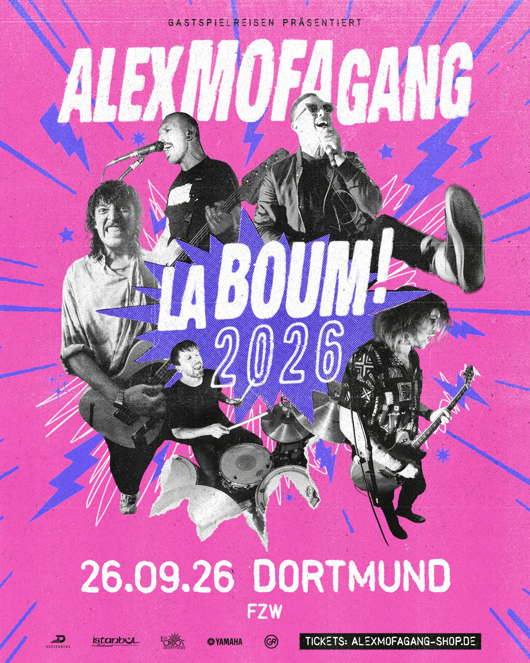 3, 2, 1… Zündung! Wenn die Alex Mofa Gang auf Tour geht, knallt’s. Denn Konzerte sind das Epizentrum dieser Band. „La Boum! 2026“ feiert die Leidenschaft für kreischende Boxen, Freudentränen und Tanzschweiß. Doch damit nicht genug: Die Alex Mofa Gang kommt 2026 nicht mit leeren Händen zurück in die Clubs. Aber dazu später mehr. Einlass:… ALEX MOFA GANG – La Boum! 2026 weiterlesen